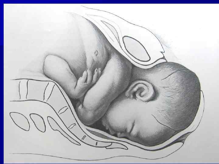 1 МОМЕНТ – СГИБАНИЕ ГОЛОВКИ УМЕНЬШАЯСЬ, ГОЛОВКА ОПУСКАЕТСЯ В ПОЛОСТЬ ТАЗА ПРОВОДНАЯ ТОЧКА