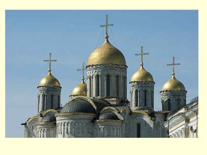 Успенский собор во Владимире, XII в. Сооружен Андреем Боголюбским, изначально был одноглавым, после пожара 1185 г. расширен и перестроен.