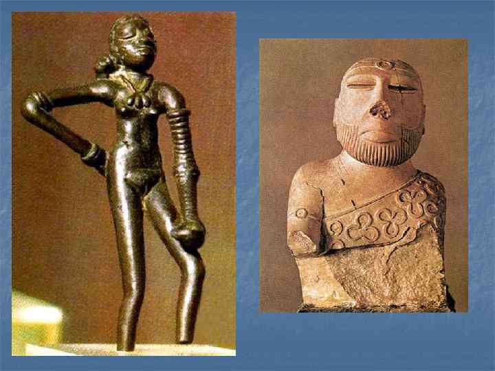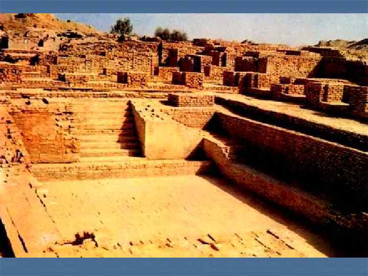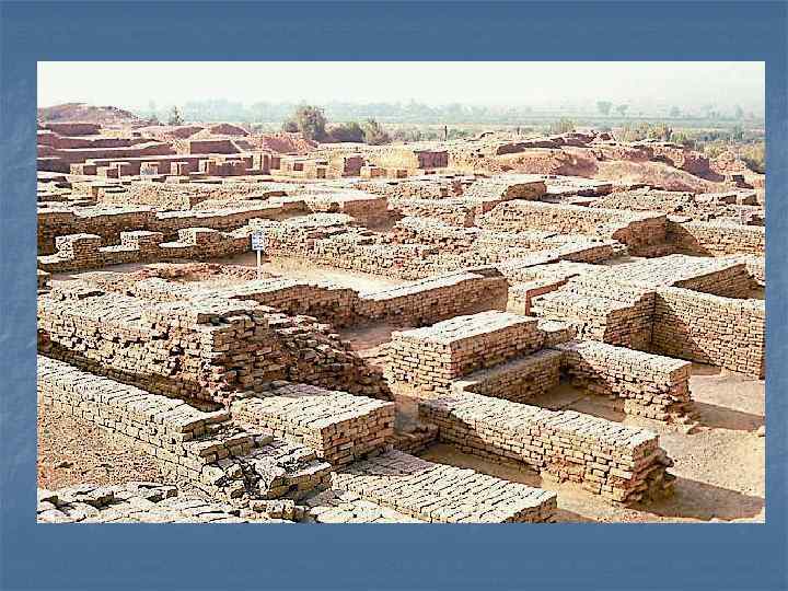 Хараппа и Мохенджо-Даро являлись, как предполагают, центрами индской цивилизации, существовавшей в 3 -м тыс. до н. э. Проводимые раскопки позволили обнаружить города площадью около 1, 5 кв. км с правильной планировкой, сложной системой канализации, остатками больших сооружений (среди которых «купальня» , «зернохранилище» , и др. ). При раскопках обнаружено также большое количество печатей и фигурок из камня и бронзы. Индская цивилизация имела свою письменность, но язык ее не разгадан. .
