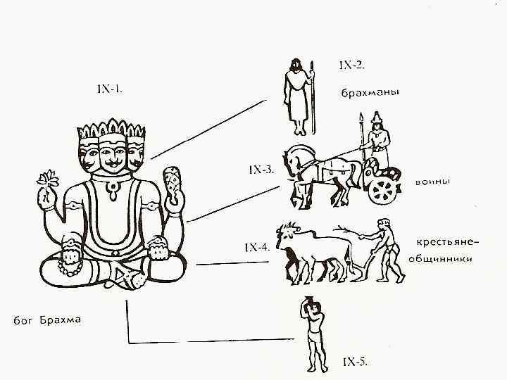 Брахманы = жрецы n Кшатрии = воины n Вайшьи = крестьяне ремесленники n Шудры = слуги Изменить касту невозможно, как невозможно корове родить лошадь, так невозможно сыну вайшьи стать брахманом. Единственная возможность изменить касту – жить праведно и переродиться. n