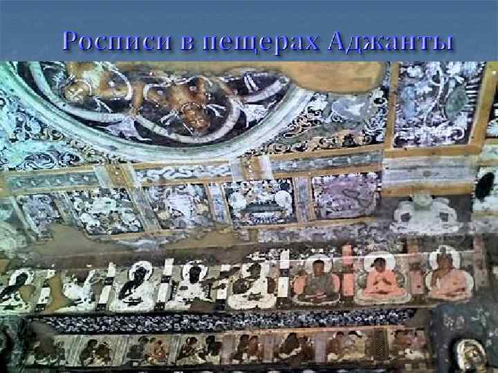 Пещерный монастырь Аджанта (2 в. до н. э. - 5 в. н. э. ) Состоит из 29 пещер, высеченных в скалах и соединенных широкой тропой. Потолки пещер поддерживают резные и покрытые росписями колонны. Известность эта пещера приобрела как раз благодаря росписям на темы буддистских легенд.