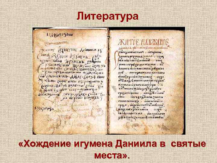Литература «Хождение игумена Даниила в святые места» .