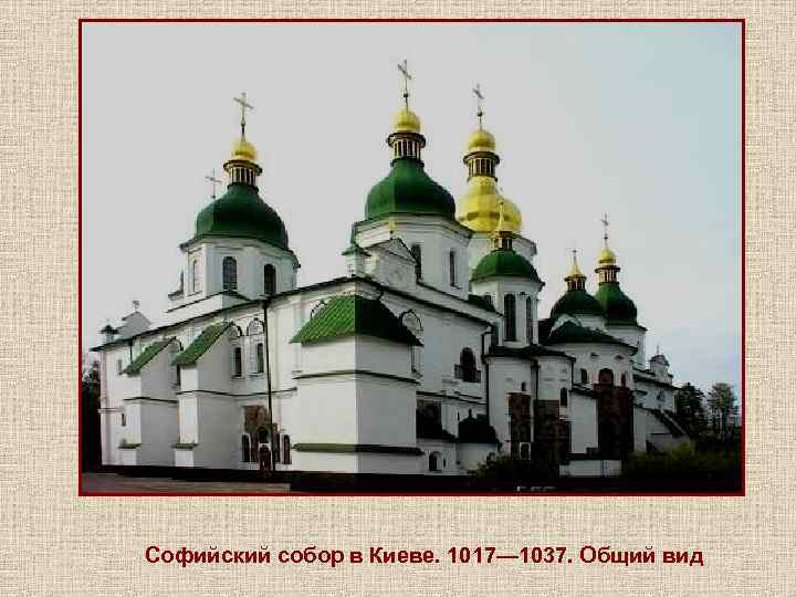 Собор Св. Софии • В Новгороде, расположенном на севере страны, втором по значению и величине городе Киевского государства, в 1052 построен собор Св. Софии. Главный православный храм Великого Новгорода, созданный в 1045— 1050 годах.