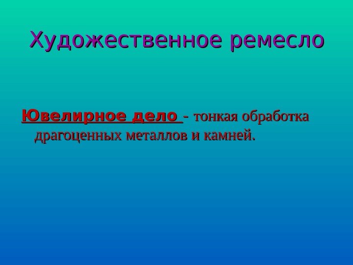 Художественное ремесло Ювелирное дело — — тонкая обработка драгоценных металлов и камней.