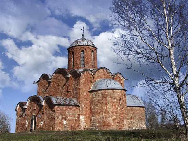 Церковь Петра и Павла в Кожевниках (1406) Один из самых красивых новгородских храмов был постро ен на средства ремесленников кожевников. Богато украшен ная декоративными элементами, церковь не оштукатурена, благодаря чему можно видеть, как выглядели древнерус ские храмы много лет назад. Старинные иконы из церкви хранятся в музее в Кремле.