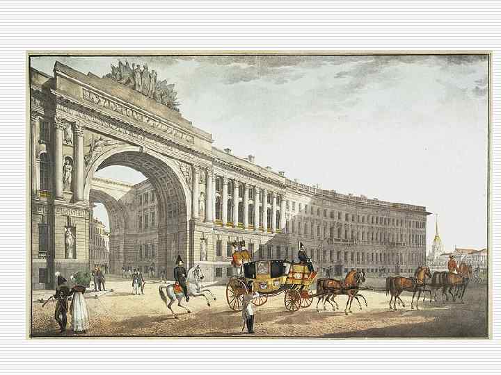 Архитектура Ампир – поздний классицизм (массивные монументальные формы, строгие линии и украшения, военные эмблемы) А. Д. Захаров Здание Адмиралтейства (Петербург) А. Н. Воронихин Казанский собор (Петербург) К. И. Росси Ансамбль Дворцовой площади, Александринский театр, Михайловский дворец (Петербург) О. И. Бове Большой и Малый театры, Триумфальные ворота, Александровский сад (Москва) Русско-византийский стиль (с 1830 -х гг. ) К. А. Тон Храм Христа Спасителя Большой Кремлевский дворец Оружейная палата