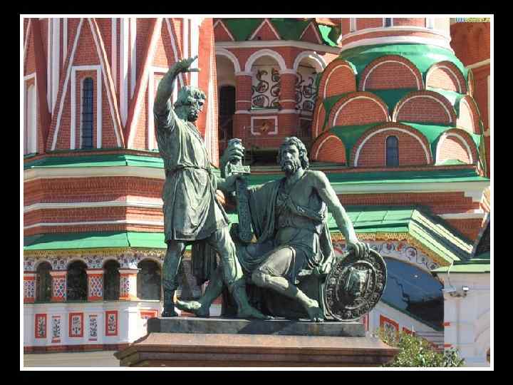 Иван Петроович Маартос Памятник Минину (стоит) и Пожарскому (сидит) на фоне Собора Василия Блаженного 1818 г.
