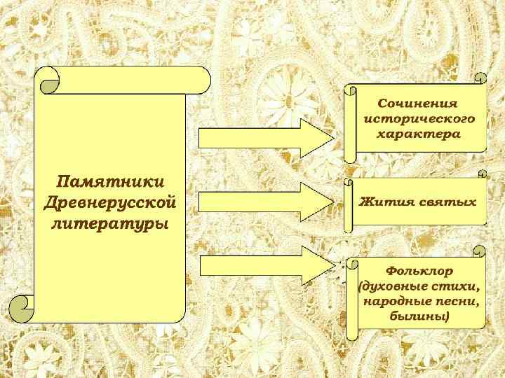 Важнейшие памятники древнерусской литературы: • Остромирово Евангелие (в 1056 -1057 гг. для новгородского посадника Остромира) • «Повесть временных лет» (составлена монахом Киево-Печерского монастыря Нестором в начале XII в. ) • Жития князей Бориса и Глеба • «Слово о законе и благодати» (40 -е годы XI в. , митрополит Илларион) • «Поучение детям» Владимира Мономаха • «Слово» и «Моление» Даниила Заточника • «Слово о полку Игореве»