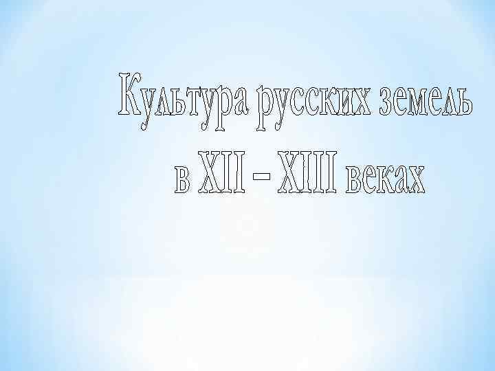 Культура русских земель в XII –XIII веках