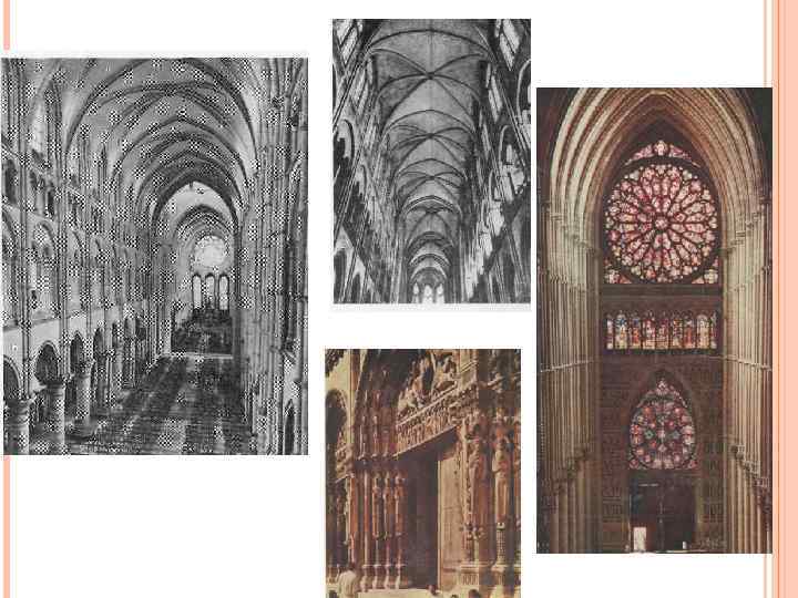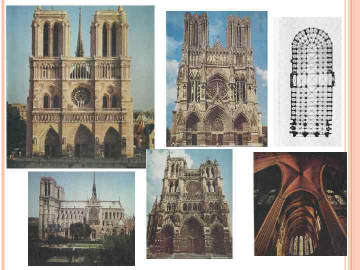Готический стиль сформировался во Франции в 12 веке, затем перешел в Англию и распространился по всей Европе. Готический собор - это базилика, имеющая апсиду, арку (стрельчатая) и нервюрный свод. Вместо мощных контрфорсов возникают легкие аркбутаны (опорные арки). Стены и оконные проемы внутри готического храма украшались витражами, посвященных содержанию Св. писания. С внешней стороны – скульптурой. На портале готического собора с внешней стороны представлена эсхатология, тема страшного суда, на внутренней стороне витражи, отражающие гармонию и совершенство мира.