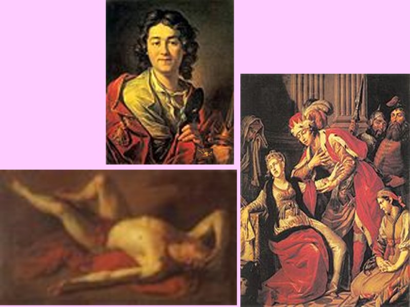 4. Живопись. Дмитрий Левицкий (1735 - 1822), сын украинского художника Григория Левицкого (1698 - 1769), академик Петербургской академии искусств, написал более 100 портретов (портрет Дм. Левицкого, портреты Демидова и Дьякова и др.). Антин Лосенко (1737 - 1773), представитель классицизма, академик и ректор Петербургской академии искусств. Учился в школе живописи в королевской академии Франции, получил там медаль за живописные произведения.