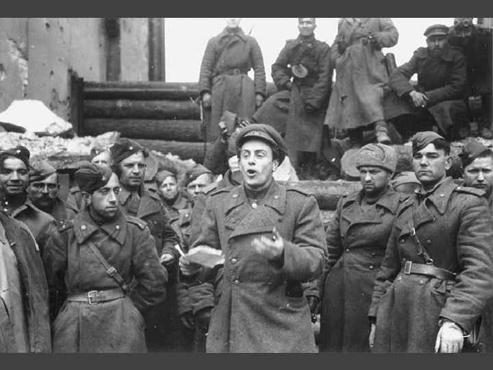 Литература Писатели стремились помочь своему народу выстоять под тяжелым бременем войны и поддержать воинский дух солдат. Писали произведения о самопожертвовании, мечтах о победе, ненависти к врагу, любви к Родине. Стихи публиковались центральной и фронтовой печатью, транслировались по радио, звучали с импровизированных сцен на фронте и в тылу.