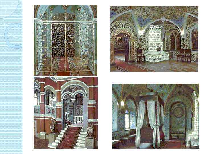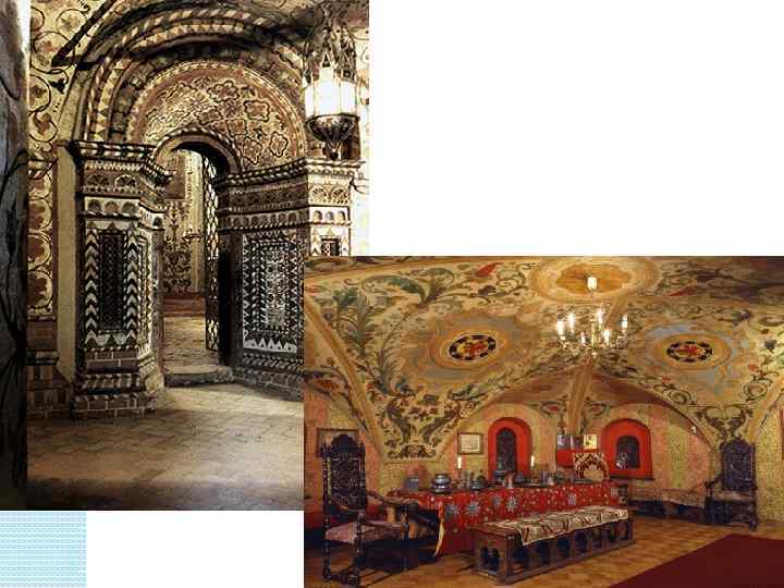 Теремной дворец в Московском Кремле В 1635 году царь Михаил Федорович начал сооружение Теремногодворца. Русские зодчие Антип Константинов, Бажен Огурцов, Трефил Шарутин и Ларион Ушаков.