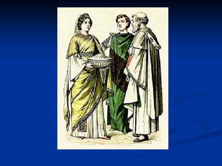 n Византийская мода, наследница моды римской, сохранила как античную верхнюю одежду - тогу, паллиум, пенулу и т. д. , изменив только их названия, так и нижнюю — тунику: эта последняя изменилась на далматику (dalmatica) и альбу (alba), из пенулы появилась касула альда (casula aida). Эти типы одежды стали постоянной составной частью церковного одеяния.