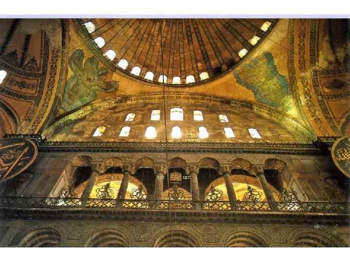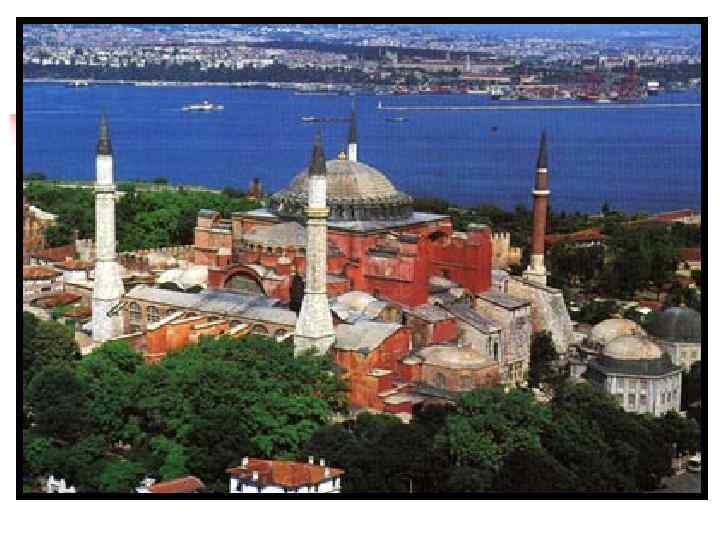 Византия была не только самым богатым, но и наиболее культурным государством раннего средневековья. В Константинополе (ныне Стамбул, Турция) действовали юридическая, философская и высшая Патриаршая школы, работали историки и философы. ПЕРИОДЫ РАЗВИТИЯ ВИЗАНТИЙСКОЙ КУЛЬТУРЫ: АНТИЧНАЯ РАННЕХРИСТИАНСКИЙ (1 -3 ВЕК) РАННЕВИЗАНТИЙСКИЙ «ЗОЛОТОЙ ВЕК» ЮСТИНИАНА (527 -565 гг) Храм Софии, мозаики Равенны ИКОНОБОРЧЕСКИЙ (8 -первая половина 9 века) Поздний период (вторая половина 9 -10 века) ВИЗАНТИЙСКАЯ КУЛЬТУРА ХРИСТИАНСКАЯ