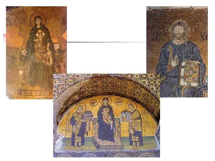 Изображения на стенах рассказывали об основных событиях христианской истории, они переносили мысли верующих в особый мир. Многочисленные изображения Христа, пророков и ангелов, сцены из Священного Писания и прославление власти императора стали излюбленными темами и сюжетами византийских мозаик.
