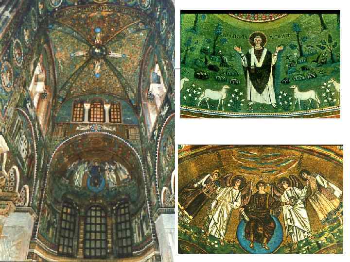 Императорская власть в Византии достигла небывалого могущества. Мозаики в алтаре церкви св. Виталия в Равенне (546 -547 г. г. ) переносят зрителя в атмосферу роскошных царских выходов. Декор алтаря имел не только религиозный, но и политический смысл. Персона императора рассматривалась как священная. Властитель считался наместником Бога на земле.