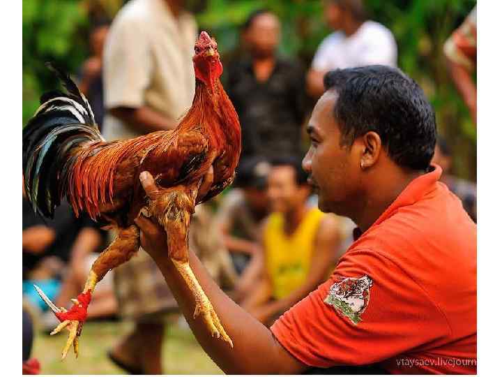Метафорика языка «Язык мужской части населения Бали пропитан образами из петушиной сферы. Слово sabung, обозначающее петуха, используется метафорически и значит «герой» , «воин» , «победитель» , «способный человек» , «политический кандидат» , «холостяк» , «денди» , «сердцеед» или «крутой парень» . Напыщенного человека, чье поведение не соответствует его скромному статусу, сравнивают с бесхвостым петухом, который важничает так, будто у него большой красивый хвост…»
