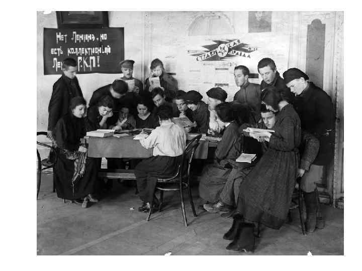 Мероприятия 1. 2. 3. 4. Борьба с безграмотностью. По переписи 1920 г. в России умело читать 41. 7 % населения. В 1930 - введено всеобщее начальное образование. По всей стране создавались ликбезы - центры по ликвидации неграмотности людей до 40 лет. Развернулось массовое движение по борьбе с неграмотностью под лозунгом: « Грамотный обучи неграмотного»