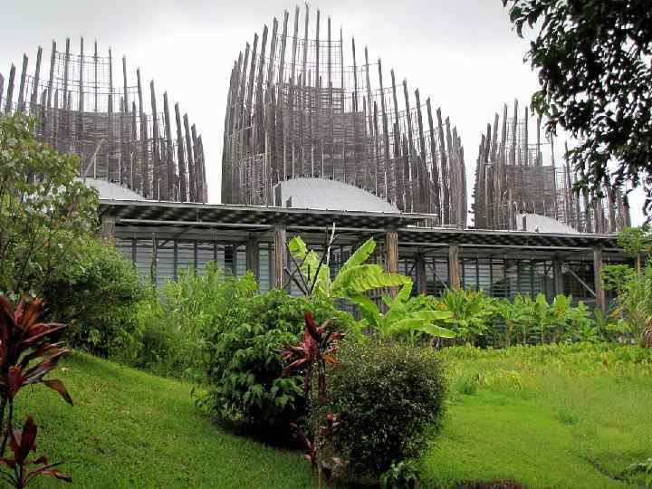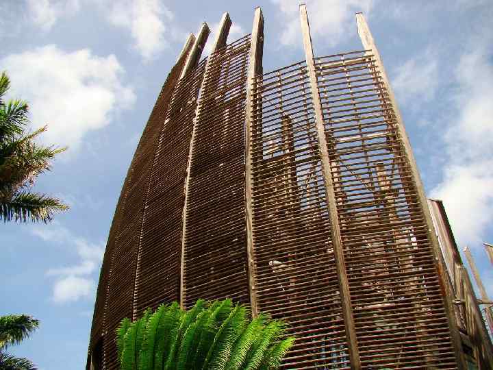 Культурный центр Тжибао Эко-архитектурный шедевр Ренцо Пьяно Идея создания культурного центра канаков, коренной народности Меланезии, в столице Новой Каледонии Нумеа возникла в 1989 году в процессе переговоров о независимости этой французской территории. В 1991 году международный архитектурный конкурс на проект здания был выигран итальянским архитектором Ренцо Пьяно (Renzo Piano). Концепция была построена на симбиозе традиционной меланезийской архитектуры, современной минималистичной и хайтековской пластики и инновационных технологий и материалов. Открытие комплекса, выстроенного в заповедной прибрежной зоне в 10 км от Нумеа, состоялась в мае 1998 года, и именно тогда центру было присвоено имя трагически погибшего канакского политического лидера Жан-Мари Тжибау (Jean-Marie Tjibaou).
