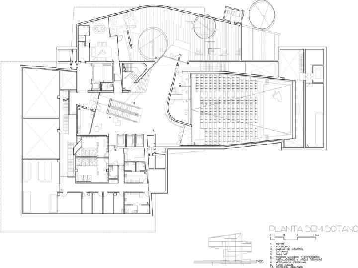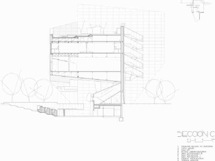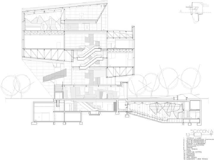 Структура комплекса Все «паруса» объединены низкой одноэтажной реечной галерей из ироко, пробковой коры, стали и стекла. Они разделены на три функциональных блока. В первом, самом крупном расположены залы для постоянных и временных экспозиций, студия и амфитеатр лектория, во втором – административная зона, архив, библиотека и конференц-зал, в третьем – художественные студии танца, музыки, живописи и скульптуры. Общая площадь комплекса составляет 6700 кв. м. Проект был удостоен Притцкеровской архитектурной премии.