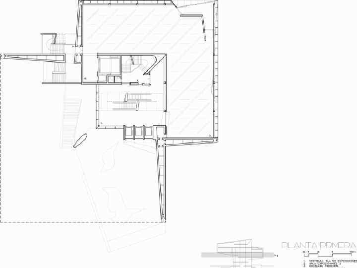 Два основных объема подняты над землей, что позволило освободить первый этаж, наполнив его более прозрачными и открытыми пространствами: там расположена входная зона в музей и сувенирный магазин, а городской парк проходит под зданием, подводя к подземной аудитории на 300 человек. Эта площадь становится связующим звеном между городом и музеем, стирая границы между ними.