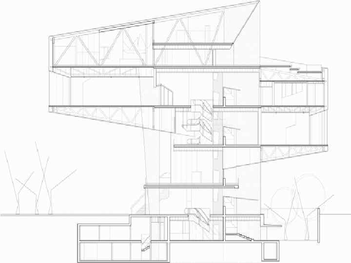 Задачей архитекторов было создать здание, которое бы «ощущалось как город» , во-первых, за счет создаваемого им множества разнообразных общественных площадок. Во-вторых, оно должно соотноситься с перспективными городскими видами, создавая снаружи такое же рефлексивное пространство, какое ощущает зритель, находясь на выставке внутри.
