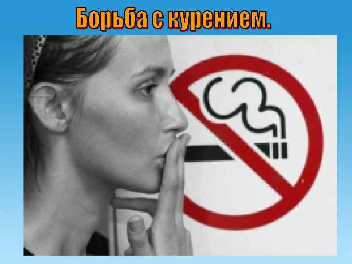 Борьба с курением требует, прежде всего, систематической антирекламы табака. Необходимы также запрет рекламы табака и запрет курения в общественных местах. В 1995 году в связи с принятием Федерального закона «О рекламе» введены серьезные ограничения на рекламу табачных изделий, как в средствах массовой информации, так и на наружную рекламу. В 2005 году принят Федеральный закон «Об ограничении курения табака» . 9 декабря 2005 года, Госдума РФ приняла в первом чтении законопроект, который предусматривает наказание за табакокурение вне специально отведенных для этого мест. Во многих странах курение в общественных местах запрещено законом. В ноябре 2004 года Бутан стал первой страной, в которой запрещена продажа табака и табачных изделий, а ввоз табачных изделий для личных нужд облагается 100 % пошлиной. Британские парламентарии проголосовали в феврале 2006 за полное запрещение курения в пабах и клубах. Закон должен полностью вступить в силу в середине 2007 года. Аналогичное решение о запрете курения во всех общественных местах, включая рабочие места, пабы, рестораны и клубы, было принято ранее в Ирландии. Практически на всех европейских авиалиниях курение запрещено в течение всего полёта. Международный день отказа от курения (World No Tobacco day) отмечается в мире в 31 мая. Резолюцией WHA 42. 19 (1988) Всемирная организация здравоохранения устанавливает 31 мая как Международный день отказа от курения. День отказа от курения отмечается также в третий четверг ноября. Он был установлен Американским онкологическим обществом в 1977 году.
