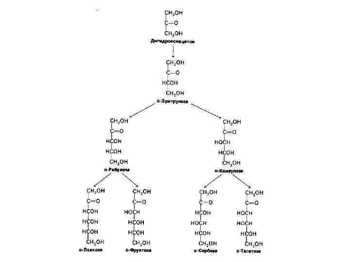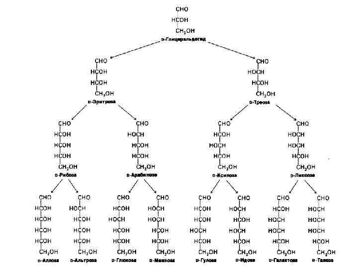 D-глюкоза(форма открытой цепи) β–D-глюкоза α–D-глюкоза D-рибоза(форма открытой цепи) β–D-рибоза α–D-рибоза