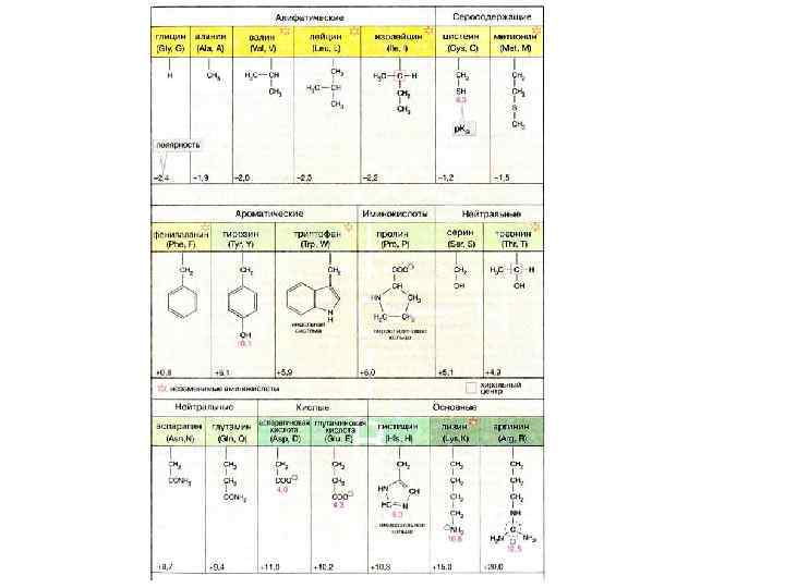 Основные сложные органические биомолекулы, присутствующие в клетках и тканях Биомолекулы Мономеры Главные функции ДНК Дезоксирибонуклеотиды Генетический материал РНК Рибонуклеотиды Матрица для синтеза белков; компоненты рибосом; транспортные Белки Аминокислоты Структурообразующие, запасные, транспортные, двигательные, защитные, регуляторные, ферментативные Полисахариды (гликоген) Глюкоза Кратковрем. энергии Липиды Жирные кислоты Компоненты мембран; длит. запас. энергии (триацилглицеролы) запасание Нормальный химический состав организма человека (весом 65 кг) Компоненты Масса, кг Содержание, % Белки 11 17, 0 Жиры 9 13, 8 Углеводы 1 1, 5 Вода 40 61, 6