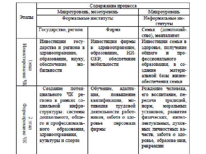 Процесс воспроизводства ЧК 1. Допроизводственный период: • Начальное семейное воспитание • Дошкольное обучение • Школьное образование • Специальное профессиональное образование 2. Вступление в состав рабочей силы 3. Основный период трудовой деятельности 4. Адаптация к выходу из состава рабочей силы 5. Пенсионный период Источник: Марцинкевич В. И. , Соболева И. В. Экономика человека – М. : Аспект. Пресс, 1995. С. 275 -276.