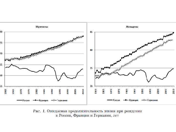 Капитал здоровья • Индекс ожидаемой продолжительности жизни как составной элемент ИРЧП • В течение 1990 х г. состояние здоровья жителей России существенно ухудшилось Отчет ИРЧП 2013 - Россия - 55 место (среди 187) по продолжительности жизни – 124 место, по уровню образования – 49 место, ВНД на душу населения - $12, 7 тысяч, 73 место • российские мужчины умирают на 15 - 19 лет раньше, чем мужчины в развитых странах