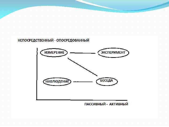 Эмпирические методы Эмпирический - от греч. empeirikos полученный из опыта. Буквально означает “то, что воспринимается органами чувств Наблюдение - основной, наиболее распространенный в психологии образования эмпирический метод изучения человека. Целенаправленное, организованное и определенным образом фиксируемое восприятие исследуемого объекта. Психологический эксперимент — проводимый в специальных условиях опыт для получения новых научных знаний посредством целенаправленного вмешательства исследователя в жизнедеятельность испытуемого. от лат. experimentum – проба, опыт - исследование явлений посредством активного воздействия на них при помощи создания новых условий, соответствующих целям исследования.