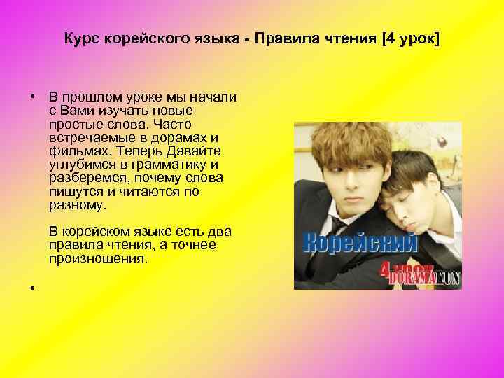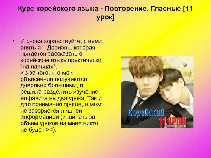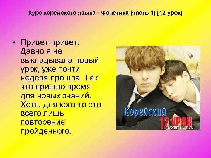 Курс корейского языка Сайт, с которого берётся информация: http: //doramakun. ru/Languages/Korean /
