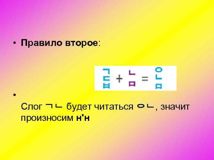 • Правило второе: • Слог ㄱㄴ будет читаться ㅇㄴ, значит произносим н'н