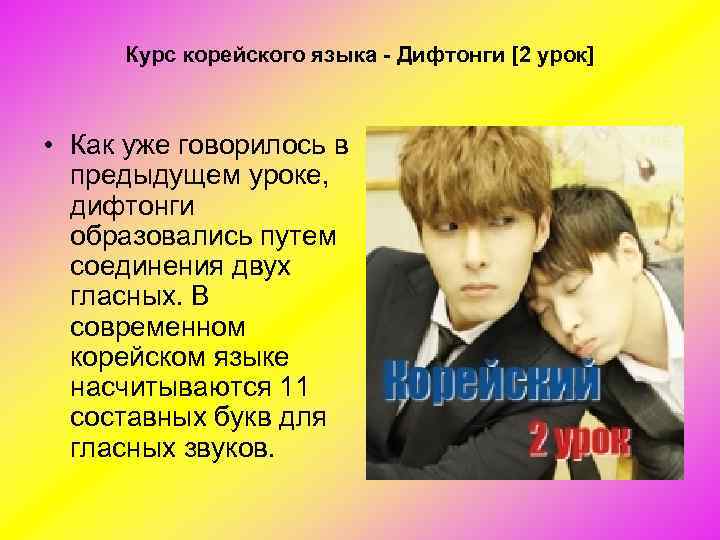 Курс корейского языка - Дифтонги [2 урок] • Как уже говорилось в предыдущем уроке, дифтонги образовались путем соединения двух гласных. В современном корейском языке насчитываются 11 составных букв для гласных звуков.