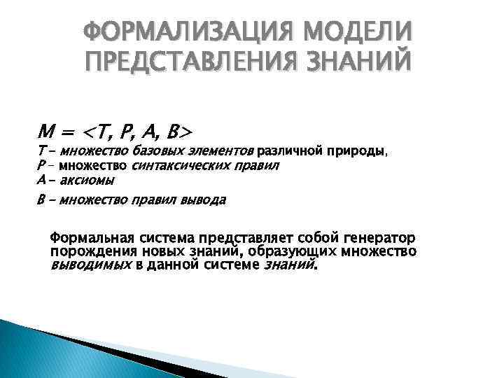 ФОРМАЛИЗАЦИЯ МОДЕЛИ ПРЕДСТАВЛЕНИЯ ЗНАНИЙ M =