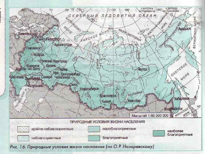 Ø Ø Ø По уровню комфортности выделяют: экстр емальные территории (полярные регионы, высокогорные районы высоких широт и т. п. ); дискомфортные территории — районы с суровыми естественными условиями, малопригодные для жизни некоренного, неадаптированного населения; подразделяются на холодные гумидные (арктические пустыни, тундра), аридные территории (пустыни и полупустыни), а также на горные районы; гипокомфортные территории — районы с ограниченно благоприятными природными условиями для переселенческого населения; подразделяются на бореалъные (леса умеренного пояса) и семиаридные (степи умеренного пояса); прекомфортные территории — районы с незначительными отклонениями от естественного оптимума для формирования постоянного населения комфортные территории — районы с практически идеальными условиями внешней среды для жизнедеятельности населения; характерны для южной части умеренного пояса, в России представлены незначительными по площади ареалами.