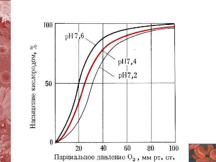Кривые насыщения кислородом для миоглобина и гемоглобина Давление О 2 в венозной крови Давление О 2 в артериальной крови Насыщение кислородом, % 100 75 Гемоглобин Миоглобин 50 Покоящаяся мышца Работающая мышца 10 0 20 40 60 80 100 Парциальное давление О 2, мм. рт. ст.