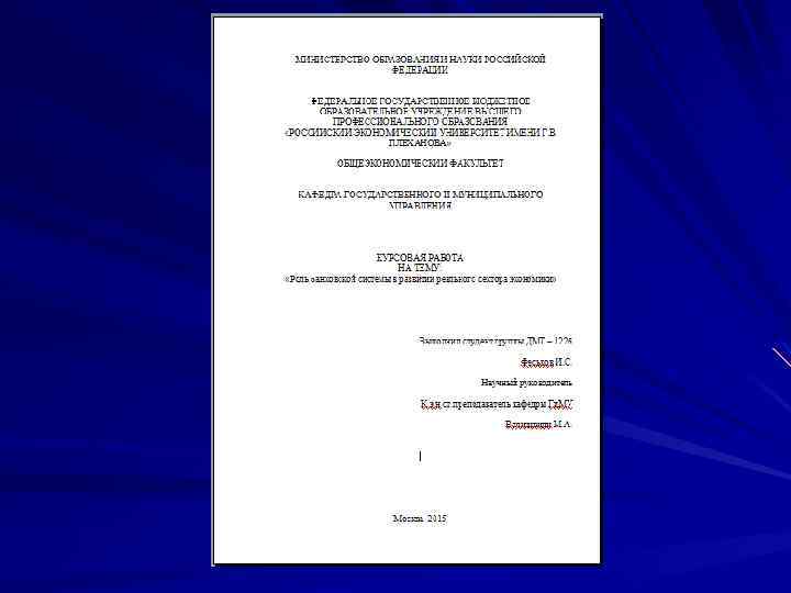 Курсовая работа на тему: «Роль банковской системы в развитии реального сектора экономики» Выполнил студент группы ДМГ – 122 б Феськов Иван Научный руководитель К. э. н ст. преподаватель кафедры Ги. МУ Валишвили М. А.