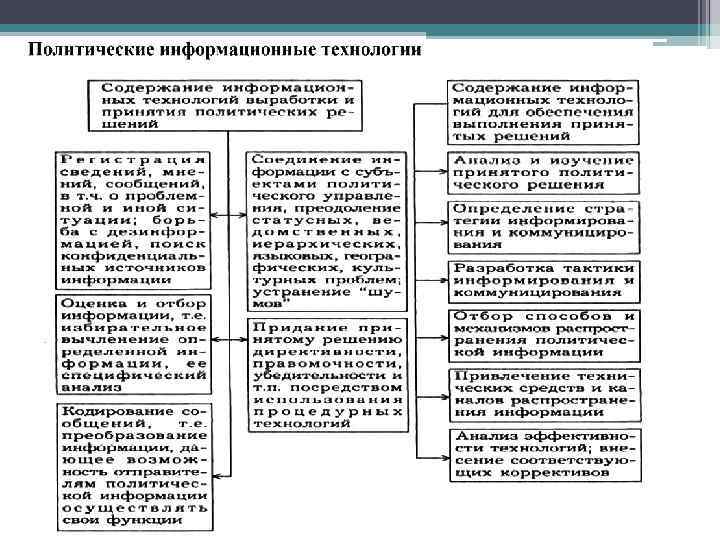 Параграф 1. 1. Политические технологии - совокупность целенаправленных действий, ориентированных на достижении заданного политического результата, метод "перевода" объективных законов политики в механизм управления, власти, т. е. перевода абстрактного языка политической науки на конкретный язык решений, документов, нормативов, предписаний, регламентирующих и стимулирующих людей на наиболее эффективное достижение поставленных целей, а также научное описание способов политической деятельности, использование возможностей информатики.