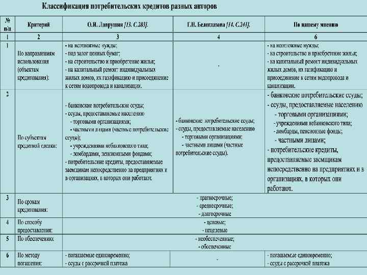 Курсовая работа должна содержать: 4) обзор в таблице классификаций рассматриваемых операций (банковских кредитов, депозитов, валютных и прочих операций банков), выделяемых разными авторами, с изложением собственного мнения по данному поводу;