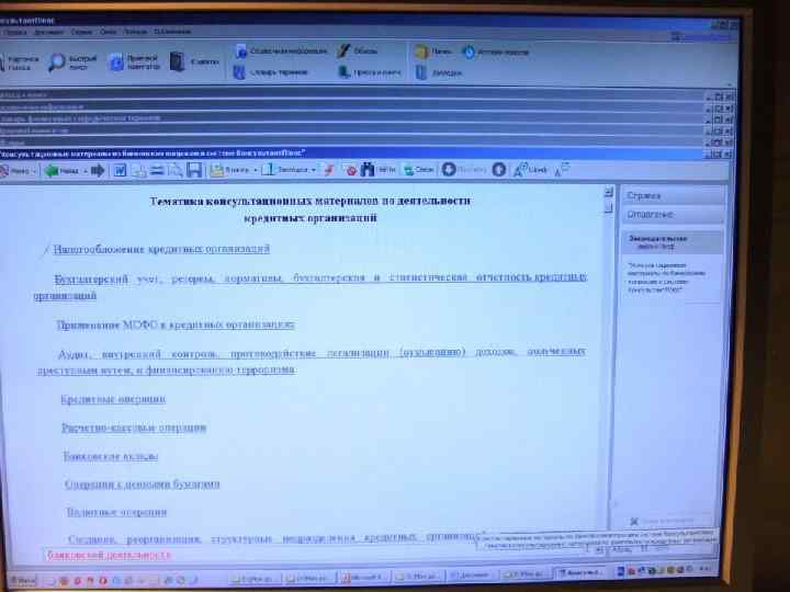 В «Консультанте. Плюс» можно найти статьи из следующих периодических изданий: • «Банки и деловой мир» • «Банковский ритейл» • «Банковское дело в Москве» • «Банковское кредитование» • «Банковское право» • «Бухгалтерия и банки» • «Инвестиционный банкинг» • «Международные банковские операции»