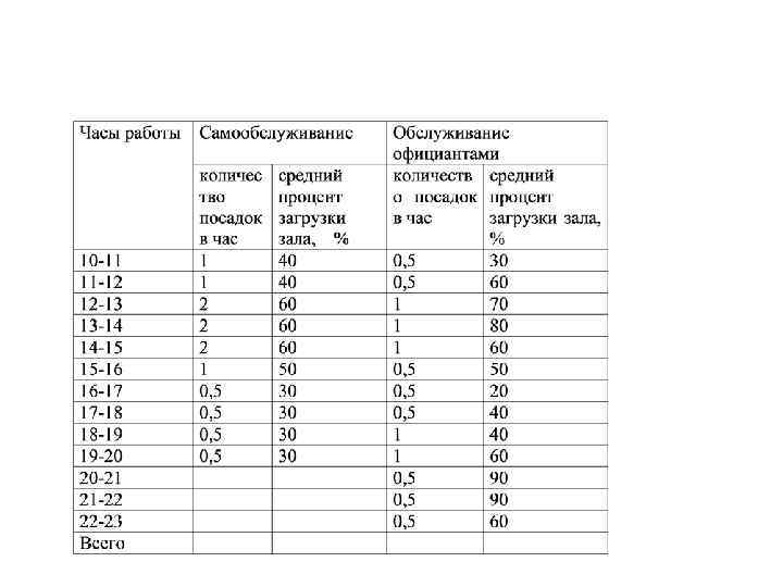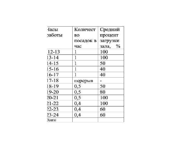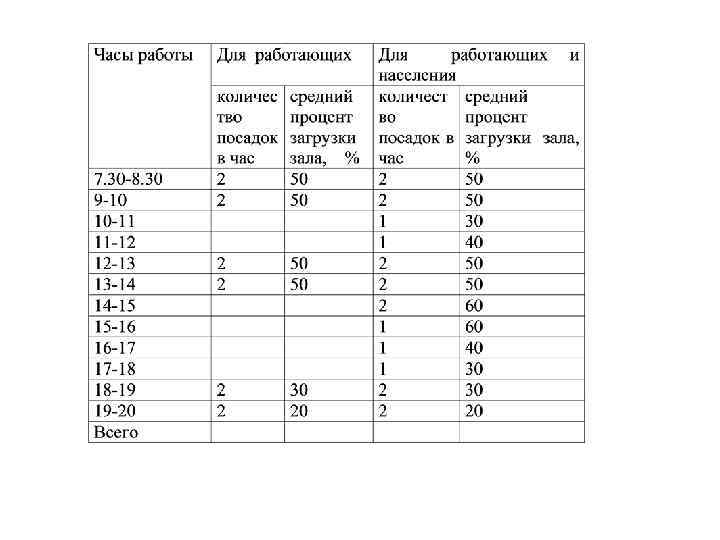 Составление производственной программы предприятия 1. Составляем график загрузки зала. • Графики рекомендуется корректировать с учетом практики работы предприятий города.