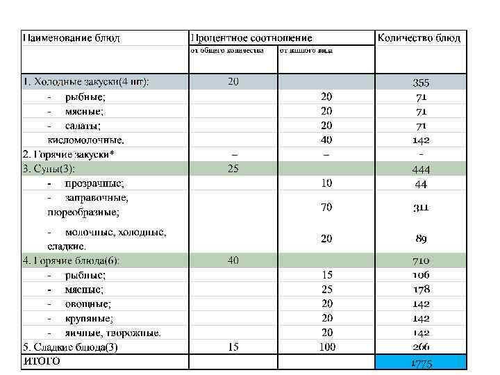 • Порядок записи блюд расчетного меню осуществляется в соответствии с требованиями нормативных документов. • В ресторанах необходимо предусмотреть банкетное меню из расчета 20% мест от вместимости зала.