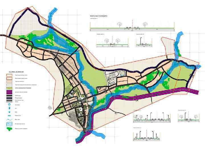 • Та львег (нем. talweg, от tal — «долина» и weg — «дорога» ) — линия, соединяющая наиболее пониженные участки дна реки, долины, балки, оврага и других вытянутых форм рельефа. • Тальвег в плане обычно представляет собой относительно прямую или извилистую линию. • Улицы целесообразно располагать по трассам тальвегов, потому что лотки проезжей части уличной сети служат приемниками дождевых и талых вод, поступающих с территории жилых образований • Водоразде л — условная топографическая линия на земной поверхности, разделяющая водосборы(бассейны) двух или нескольких рек, озёр, морей или океанов, направляя сток атмосферных осадков по двум противоположным склонам.