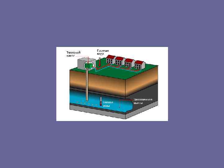 • • Виды источников энергии Скважина При использовании в качестве источника тепла скалистой породы трубопровод опускается в скважину. Не обязательно использовать одну глубокую скважину, можно пробурить несколько не глубоких, более дешевых скважин, главное получить общую расчетную глубину.