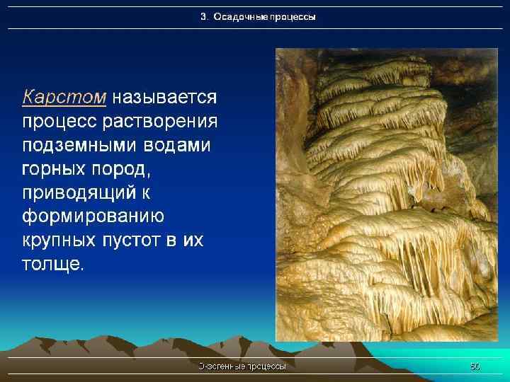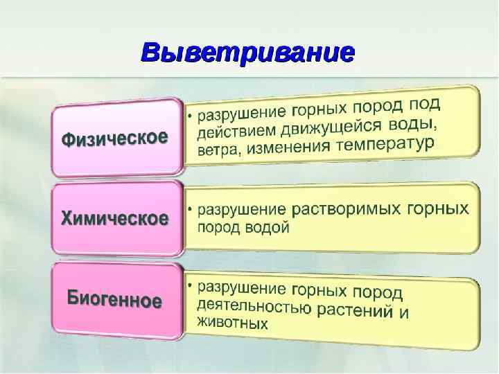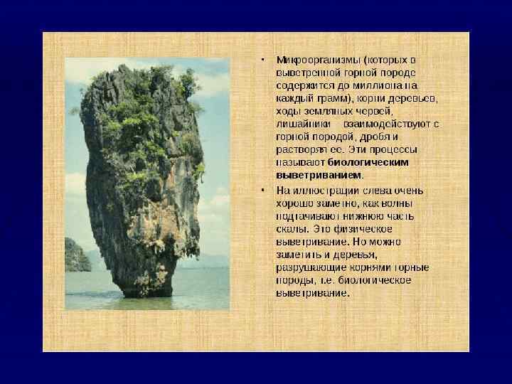 Природные факторы подразделяются на группы § Природные экзогенные факторы- это внешние по отношению к массиву горных пород факторы, определяющие его выветривание, эрозию, температурный режим и другие процессы, зависящие от климатических условий, энергии солнечной радиации и т. д. § Природные эндогенные факторы- это внутренние по отношению к массиву горных пород факторы, обусловленные в основном эволюцией Земли как планеты и проявляющиеся в виде тектонических движений, процессов магматизма, метаморфизма и др.