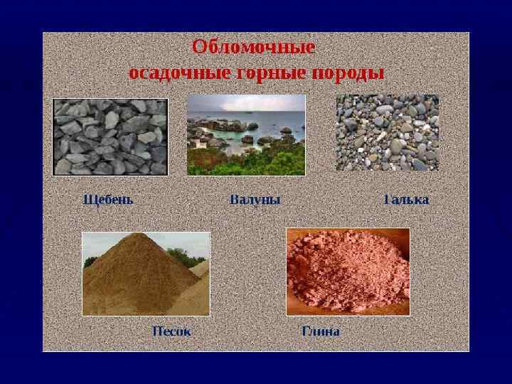 Классификация горных пород по типу связей между зернами и минералами § В зависимости от характера связей между отдельными зернам § § § различают следующие типы пород: - рыхлые ( раздельно-зернистые) породы- механические смеси различных минералов или зерен одного минерала, не связных между собой, например, песок, гравий , галечник; - связные ( глинистые) породы – породы с водно-коллоидными связями частиц между собой; например глины, суглинки, бокситы: отличительная особенность таких пород высокая пластичность при насыщении водой; - твердые ( скальные или полускальные) породы – породы с жесткой, упругой связью между частицами минералов, например песчаники, граниты, диабазы, гнейсы