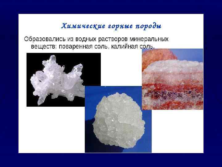 Минералы § Характерным признаком некоторых минералов является спайность – способность раскалываться по плоским блестящим поверхностям. Это явление – следствие наличия в минералах направлений с ослабленным сцеплением частиц. Весьма развита спайность у слюды. Агрегаты, сложенные такими минералами, анизотропны. § По химическому составу минералы принято делить на § § следующие группы: - Самородные элементы ( золото, серебро, мышьяк, сера, сурьма, алмаз); - Сульфиды ( хпалькозин Cu 2 S, сфалерит Zn. S, киноварь. Hg. S). - Окислы ( куприт Cu 2 O, корунд Al 2 O 3) - Силикаты ( оливин, биотит, тальк, каолин, серпентин, полевые шпаты)